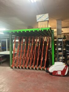• Taller de aproximadamente 950 m²: con luz natural, vestuario, aseo, un pequeño almacén y una oficina técnica. Las instalaciones están dotadas de un completo parque de maquinaria (tronzadoras, fresadoras, plegadoras, guillotina, compresor, estanterías para perfiles, etc.).